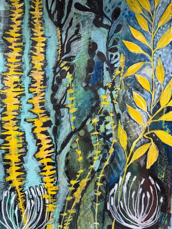 I work experimentally with materials and layer paint and multiple mediums to build depth, texture and intensity. I use colour and shape to explore connection and contrast in a clear, direct way.